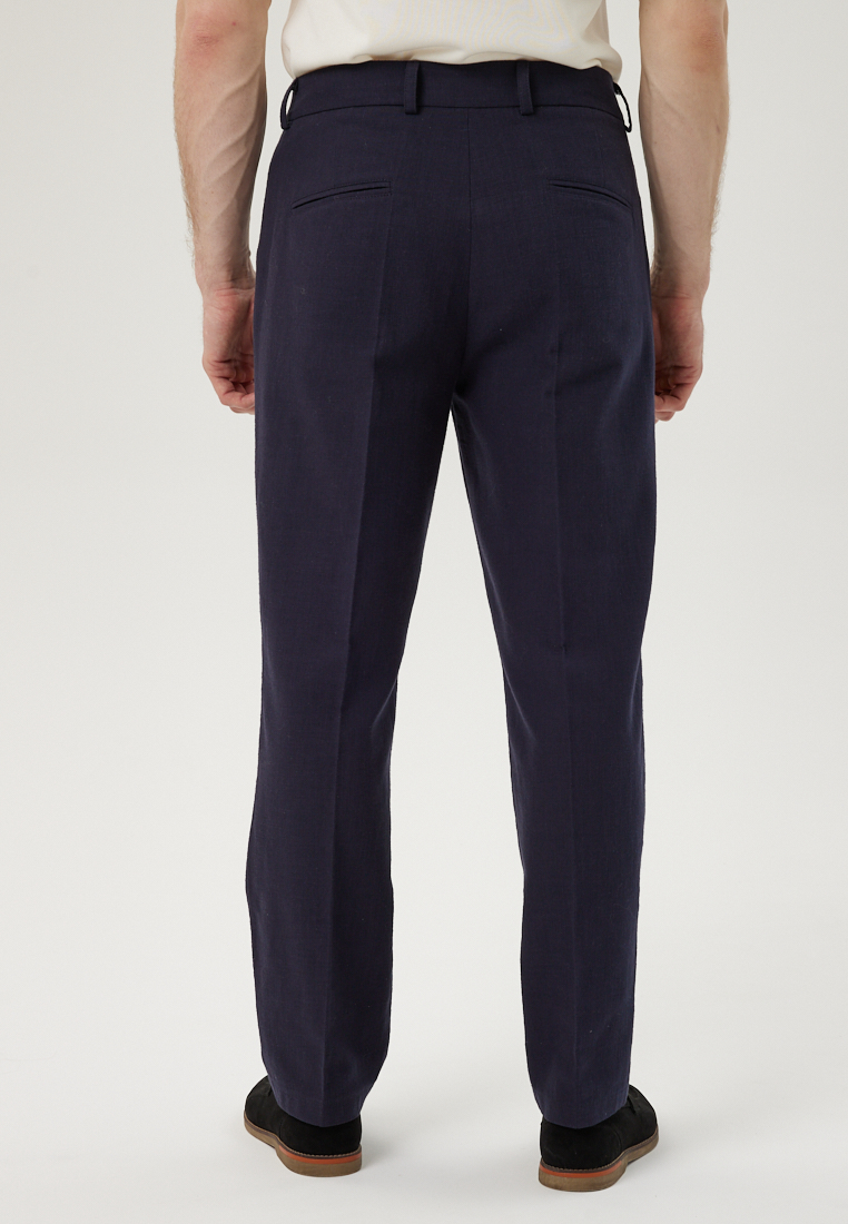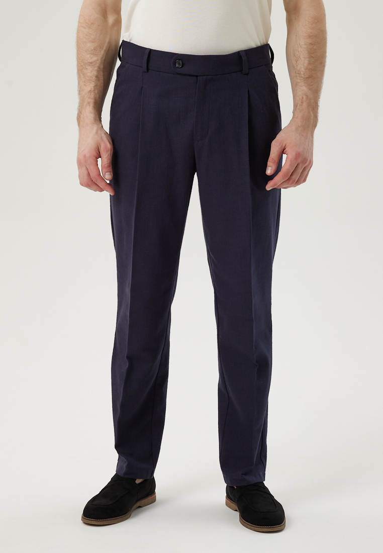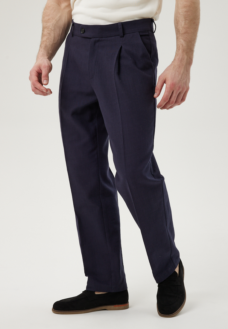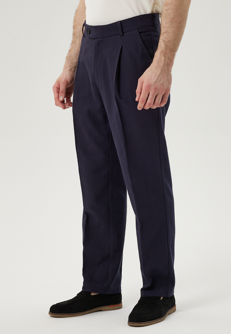 Брюки из хлопка с защипами синего цвета