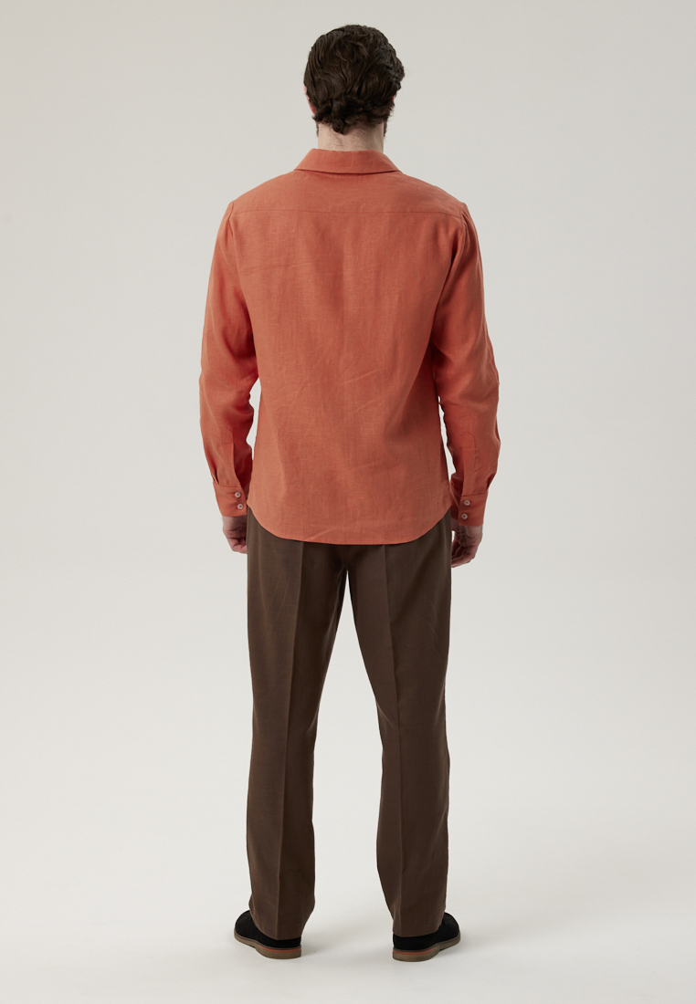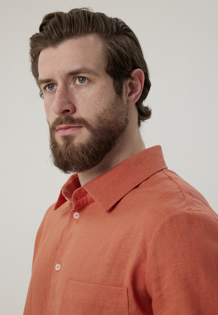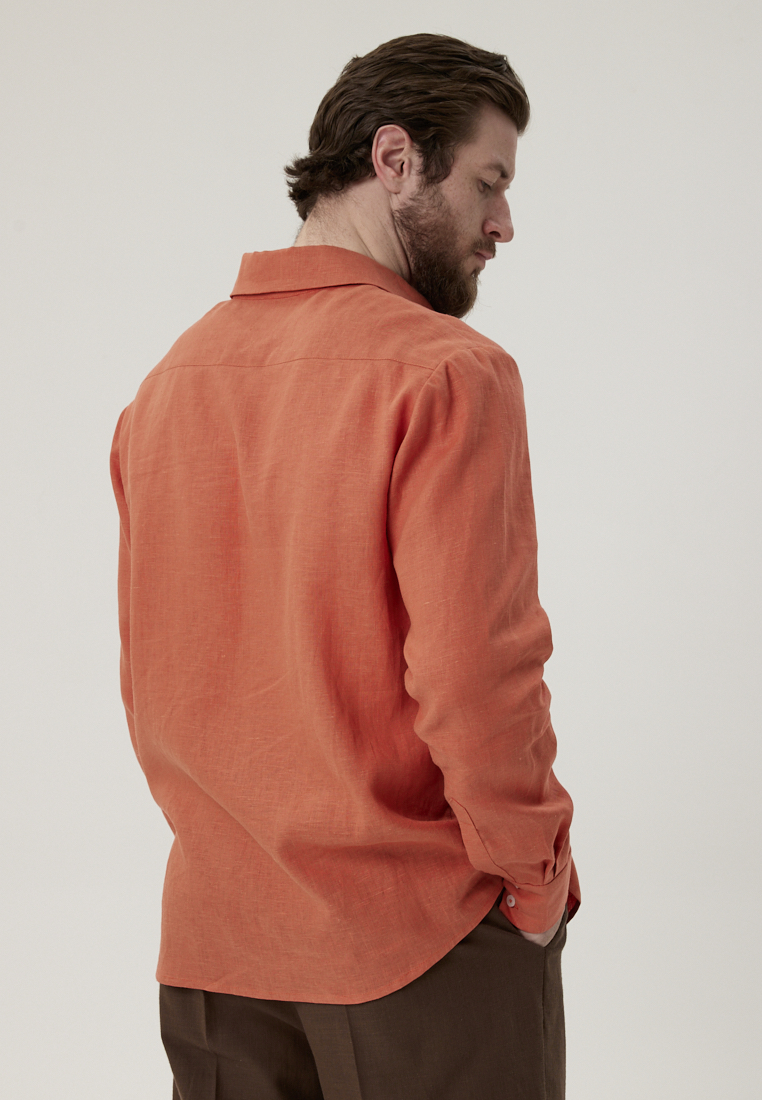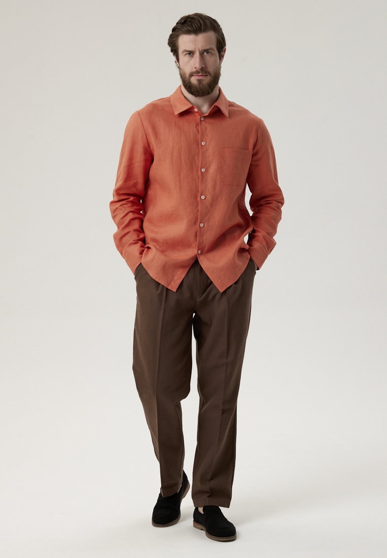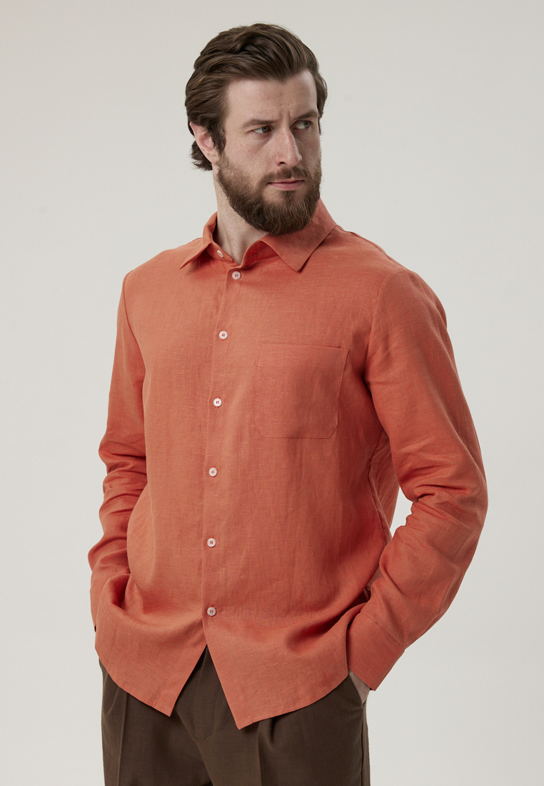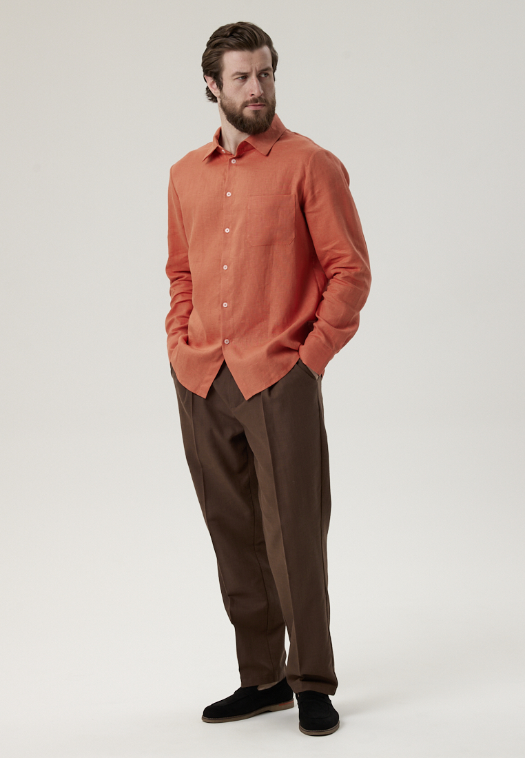 Рубашка льняная терракотового цвета