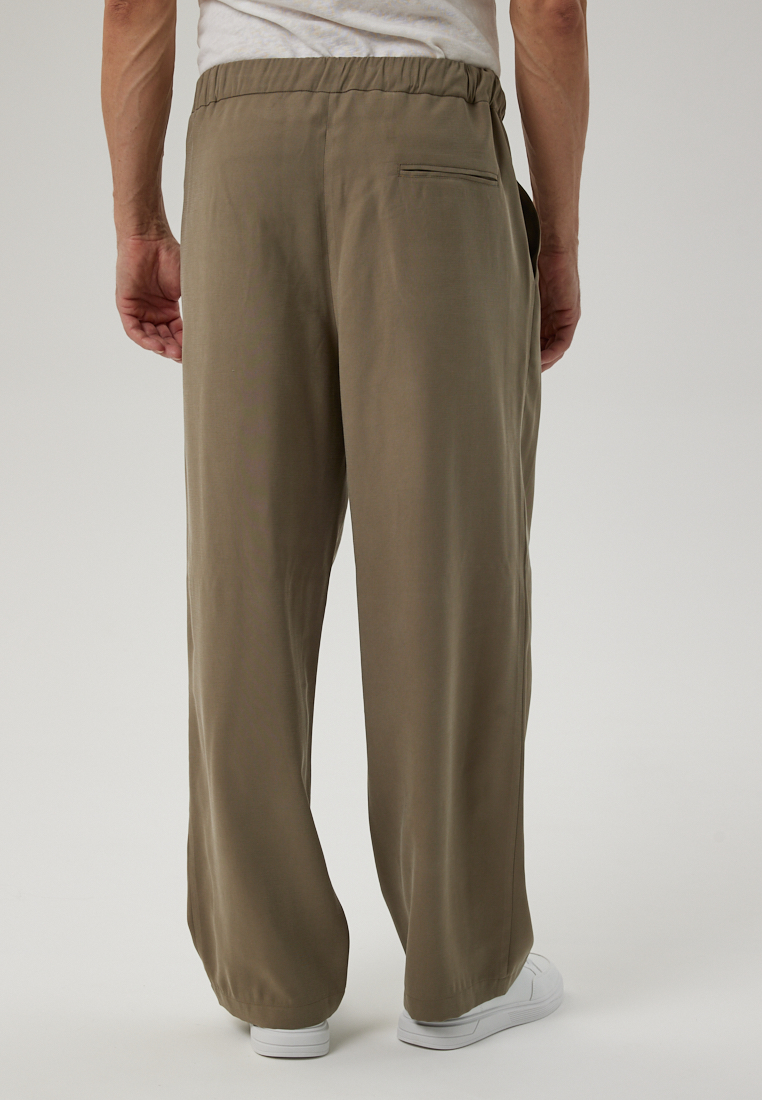 Свободные брюки на резинке оливкового цвета